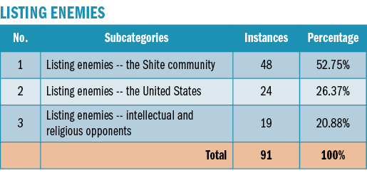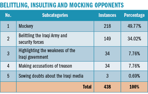 The following tables show the psychological warfare methods apparent in the content analysis of tweets posted by the eight accounts named above during a three-month period: